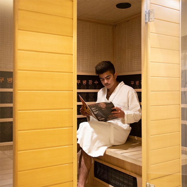 FIR Sauna and Aroma Steam uses infrared panels instead of traditional heat to easily penetrate human tissue to help in the body’s healing and rejuvenating process. This mid-infrared component can beat penetrate tissues and joints.